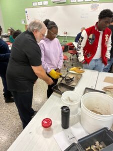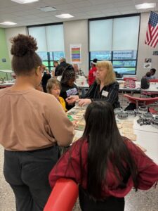 Thanks to Andy, John, Laurie, Marty, Reg, Randy, Len and Rob for volunteering at Charles Hackley Middle School in Muskegon, Mi on Oct 13th 2025. Chauncy Williams invited us out to assist with their advanced manufacturing classes. We had about 60 total students. Our volunteers got to see the advanced manufacturing lab. We got to use the virtual welding station. That was pretty cool. Other items in the room for middle schooler to learn was robotics, 3d printing and CNC machining.